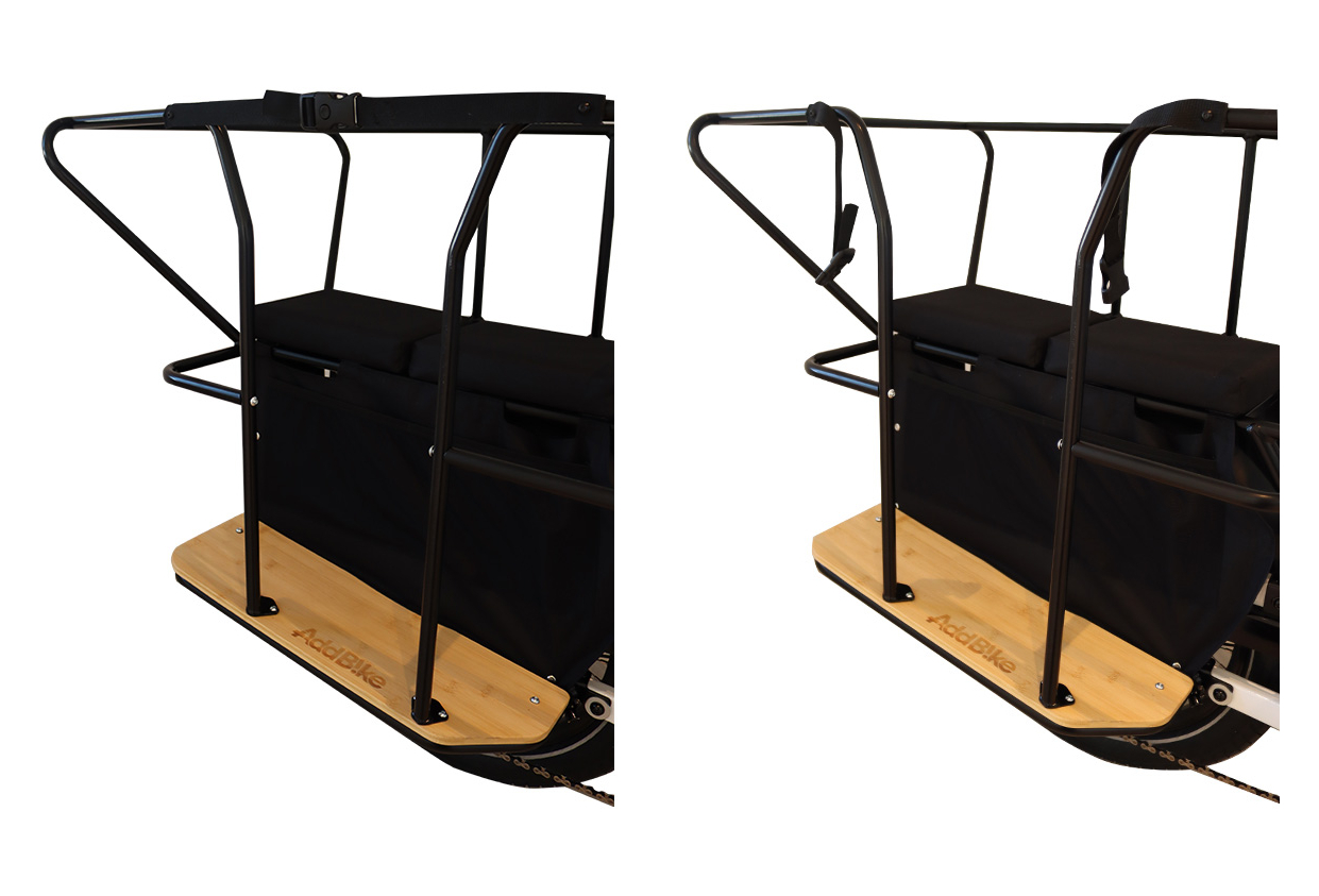 – Des barres de protection pour assurer une sécurité renforcée des enfants sur le velo longtail.