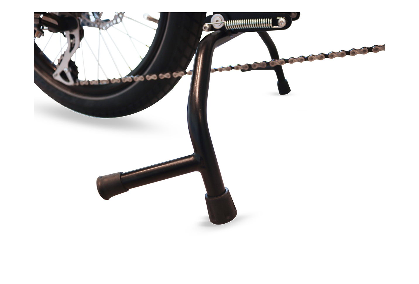 – La béquille centrale vous garantit de la stabilité quand vous chargez et déchargez votre vélo électrique. Le + : vous pourrez l’activer et l’enlever sans utiliser la force de vos bras, vos pieds suffisent !