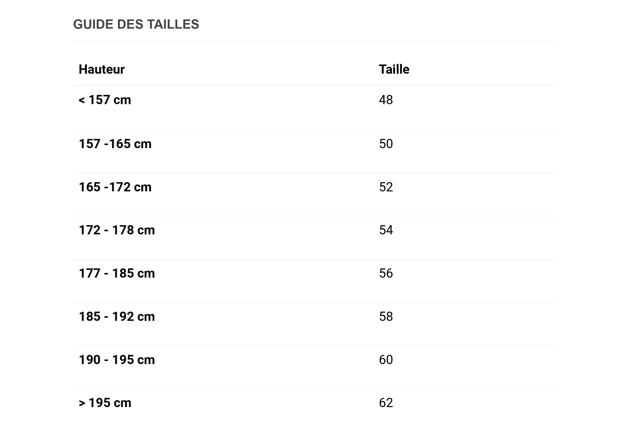 | Taille |